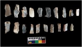 | Description / विवरण | There are n-20 microliths. Irregular in shape. Tapering can be seen. Base are flat. Some have blunt edges. |