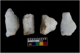 | Description / विवरण | Specimen of a cores with several broad fluted marks. Some of them are tapering at one end. |