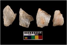 | Description / विवरण | Cores, with several broad fluted marks from almost all the sides indicating the detached blades from it. |