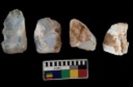 | Description / विवरण | There are n 4 utilized flake cores. There are multi directional irregular scar pattern on them. Two are tapering at one end and two have sharp edges. |