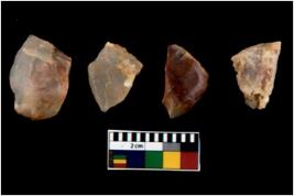 | Description / विवरण | There are n 4 utilized flakes. There are multi directional irregular scar pattern on both dorsal and ventral face of the flakes. three are sharp at one end and one has blunted edge. |