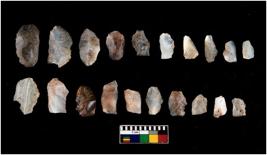 | Description / विवरण | There are n-20 microliths. Irregular in shape. Tapering can be seen. Few have pointed edges. Some have flat base and curve edges. |