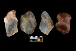 | Description / विवरण | There are n 4 utilized flakes. There are multi directional irregular scar pattern on both dorsal and ventral face of the flakes. three are tapering at one end and one has sharp edge. |