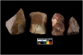 | Description / विवरण | There are n 4 utilized flakes. There are multi directional irregular scar pattern on both dorsal and ventral face of the flakes. two are tapering at one end and two are blunted edges. |