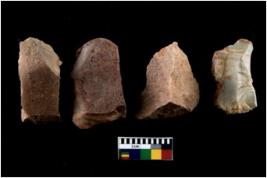 | Description / विवरण | There are n 4 utilized flakes. There are multi directional irregular scar pattern on both dorsal and ventral face of the flakes. three are tapering at one end and one has blunted edge. |
