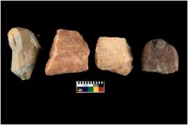 | Description / विवरण | There are n 4 utilized flakes. There are multi directional irregular scar pattern on both dorsal and ventral face of the flakes. three are sharp at one end and one has blunted edge. |