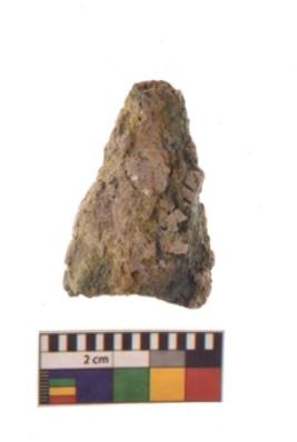 | Description / विवरण | A coppeer arrowhead with triangular shaped body with pointed top and curved pointed edges on either side at the flat end at the bottom. it is rusted in present condition. |