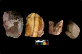 | Description / विवरण | There are n 4 utilized flakes. There are multi directional irregular scar pattern on both dorsal and ventral face of the flakes. Some of them are sharp and broken, and few are rounded at one end. |