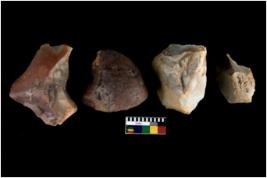 | Description / विवरण | There are n 4 utilized flakes. There are multi directional irregular scar pattern on both dorsal and ventral face of the flakes. Some of them are tapering and few are sharp edges at one end. |