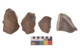 | Description / विवरण | There are n 4 flakes tool; there are flakes tool with prominent flaking marks. It made up of a large flakes with sides trimmed. It is rectangular in shaped. |