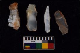 | Description / विवरण | There are n 4 flakes tool; there are multidirectional irregular scar pattern on them; made of short flakes and all four have tapering edges. |