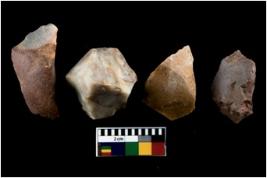| Description / विवरण | There are n 4 utilized flakes. There are multi directional irregular scar pattern on both dorsal and ventral face of the flakes. Some of them are tapering and few are sharp edges at one end. |
