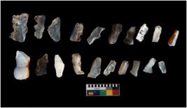 | Description / विवरण | There are n-20 microliths. Few of them have rough sides. Few of them have flat base. Few of them have pointed edges, and few of them have flat edges. Tapering can be seen in some of them, |