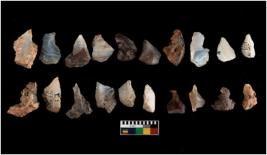 | Description / विवरण | There are n-20 microliths. Most of them have pin pointed edge. From base blades are broad and narrow at the top. Tapering can be seen. Few have rough sides edges. |
