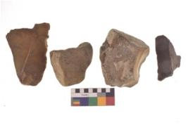 | Description / विवरण | There are n 4 flakes tool; there are large flakes with sides trimmed, Marks of secondary flaking are present on the both the faces. The dorsal is relatively flat. |