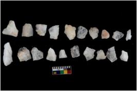 | Description / विवरण | There are n 20 flakes; there are multidirectional irregular scar pattern on them; made of short flakes, few are blades, one has pen pointed edge and few have tapering edges. |