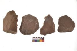 | Description / विवरण | There are n 4 flakes tool; there are flakes tool with prominent flaking marks. It made up of a large flakes with sides trimmed. It is rectangular in shaped. |