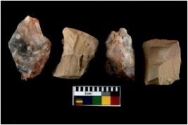 | Description / विवरण | There are n 4 utilized flakes. There are multi directional irregular scar pattern on both dorsal and ventral face of the flakes. some of them are sharp at one end and few are tapering edges. |