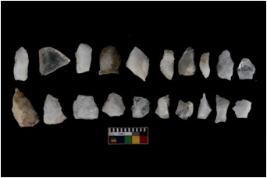| Description / विवरण | There are n 20 flakes; there are multidirectional irregular scar pattern on them; made of short flakes, few are blades, one has pen pointed edge and few have tapering edges. |