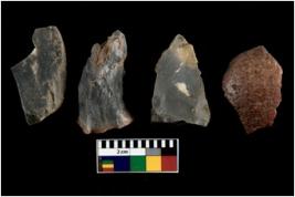 | Description / विवरण | There are n 4 utilized flakes. There are multi directional irregular scar pattern on both dorsal and ventral face of the flakes. some of them are tapering at one end and few are sharp edges. |