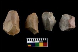 | Description / विवरण | There are n 4 utilized flakes. There are multi directional irregular scar pattern on both dorsal and ventral face of the flakes. some of them are tapering at one end and few are sharp edges. |