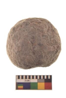 | Description / विवरण | Specimen of a spherical shaped hammer stone with battered surface |