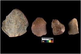 | Description / विवरण | There are n 4 utilized flakes. There are multi directional irregular scar pattern on both dorsal and ventral face of the flakes. some of them are tapering at one end and few are rounded edge. |