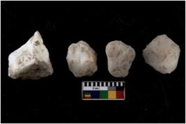 | Description / विवरण | There are n 4 flakes tool; there are multidirectional irregular scar pattern on them; made of short flakes and all four have tapering edges. |