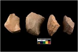 | Description / विवरण | There are n 4 utilized flakes. There are multi directional irregular scar pattern on both dorsal and ventral face of the flakes. some of them are tapering at one end and few are sharp edge. |