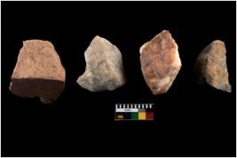 | Description / विवरण | There are n 4 utilized flakes. There are multi directional irregular scar pattern on both dorsal and ventral face of the flakes. some of them are tapering at one end and few are sharp edge. |