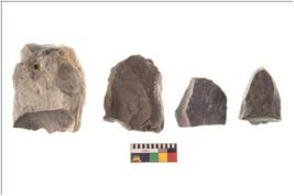 | Description / विवरण | Specimen of a cores with several broad fluted marks and some of them are tapering at one end. |