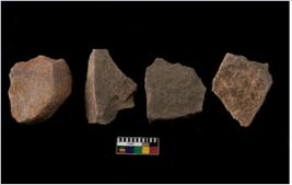 | Description / विवरण | There are n 4 of utilized worked cores and have sharp edges and multidirectional scar pattern. Three have broken tip. |