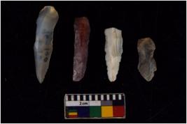 | Description / विवरण | There are n 4 Flake tool; There are multidirectional irregular scar pattern on them. few have blunt edges, Some of them are tapering at one end. |