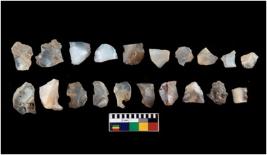 | Description / विवरण | There are n-20 microliths. They are irregular in shape. Few have them have pointed edges and flat base. Few of them are broad from base . Tapering can be seen. |
