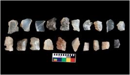 | Description / विवरण | There are n-20 microliths. They are irregular in shape. Most of them have flat base and blunt edges. Few of them have pointed corners. Tapering can be seen on few of them |