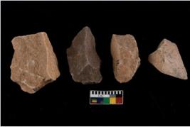 | Description / विवरण | There are n 4 of utilized worked cores. They have irregular dominant scar pattern on both dorsal and ventral sides. Two have broken tip. |