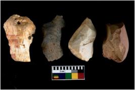 | Description / विवरण | There are n 4 utilized flakes. There are multi directional irregular scar pattern on both dorsal and ventral face of the flakes. some of them are tapering at one end and few are sharp edges. |