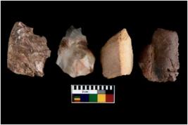 | Description / विवरण | There are n 4 utilized flakes. There are multi directional irregular scar pattern on both dorsal and ventral face of the flakes. three are tapering and one has blunted edges. |