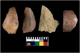 | Description / विवरण | There are n 4 utilized flakes. There are multi directional irregular scar pattern on both dorsal and ventral face of the flakes. three are tapering and one has sharp edge. |