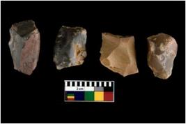 | Description / विवरण | There are n 4 utilized flakes. There are multi directional irregular scar pattern on both dorsal and ventral face of the flakes. three are blunted and one has sharp edge. |