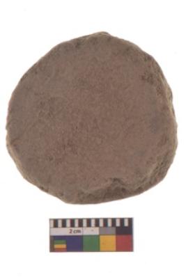 | Description / विवरण | Specimen of an oval shaped rubber stone with rectangular section and concave end |