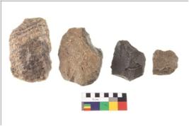 | Description / विवरण | Irregular flaked pebble with projected pointed top and flat bottom |