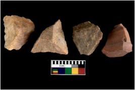 | Description / विवरण | There are n 4 utilized flakes. There are multi directional irregular scar pattern on both dorsal and ventral face of the flakes. two are tapering and two are sharp edges. |