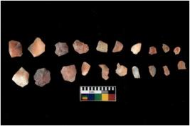 | Description / विवरण | Specimen of flakes Chips with prominent flaking marks. It made up of a short flakes with sides trimmed. |