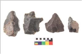 | Description / विवरण | Irregular flaked pebble with projected pointed top and flat bottom |