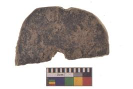 | Description / विवरण | Specimen of an oval biconvex perforated stone Mace Head Ring Stone with roughly rectangular in section. |