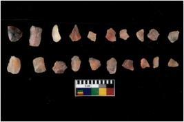 | Description / विवरण | Specimen of flakes Chips with prominent flaking marks. It made up of a short flakes with sides trimmed. |