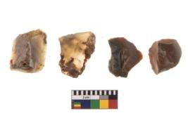 | Description / विवरण | There are n 4 utilized flakes. There are multi directional irregular scar pattern on both dorsal and ventral face of the flakes. two are sharp and two are rounded edge. |