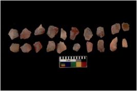 | Description / विवरण | Specimen of flakes Chips with prominent flaking marks. It made up of a short flakes with sides trimmed. |