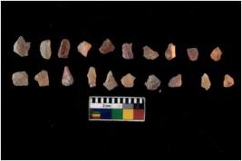 | Description / विवरण | Specimen of flakes Chips with prominent flaking marks. It made up of a short flakes with sides trimmed. |